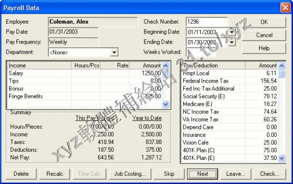 價值的處理工資的軟體。