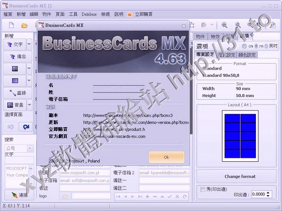 • Mojosoft Software BusinessCards MX v4.63 繁體中文正式版(商業名片製作軟體)