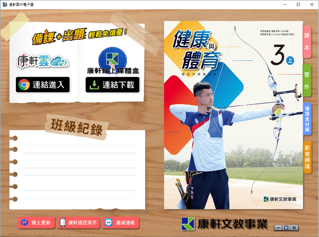 112學年上學期 國中 康軒版 健康與體育電子書 3年級(含課本、習作含解答、教學資源)教學光碟