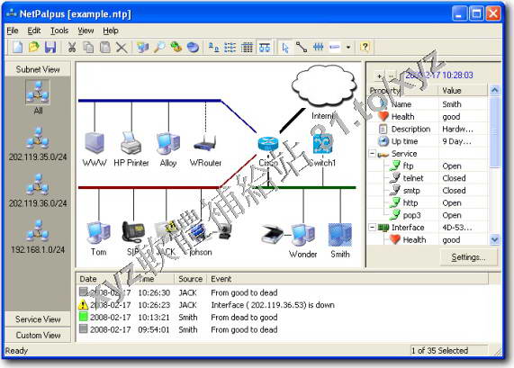 得不可使用的時候可以通過聲音或者電子郵件向你發出警報。網路設備按照子網和服務類型自