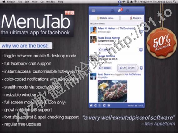 • MenuTab Pro for Facebook v4.4 MacOSX 英文正式版(Facebook 快速訪問軟體)