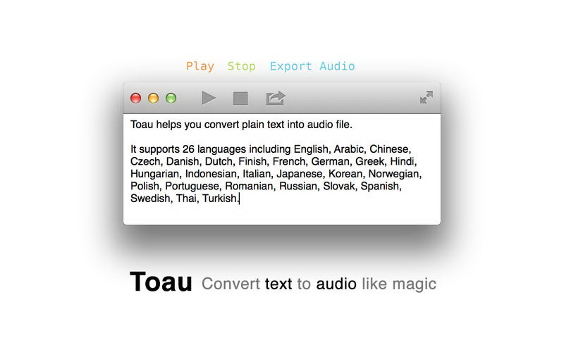 Toau helps you convert plain text into audio file.