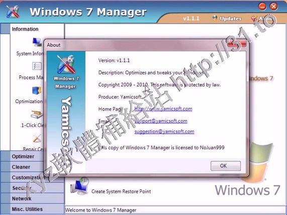 • Yamicsoft Windows 7 Manager v2.1.1 x64 英文正式版(Win7 系統優化軟體)